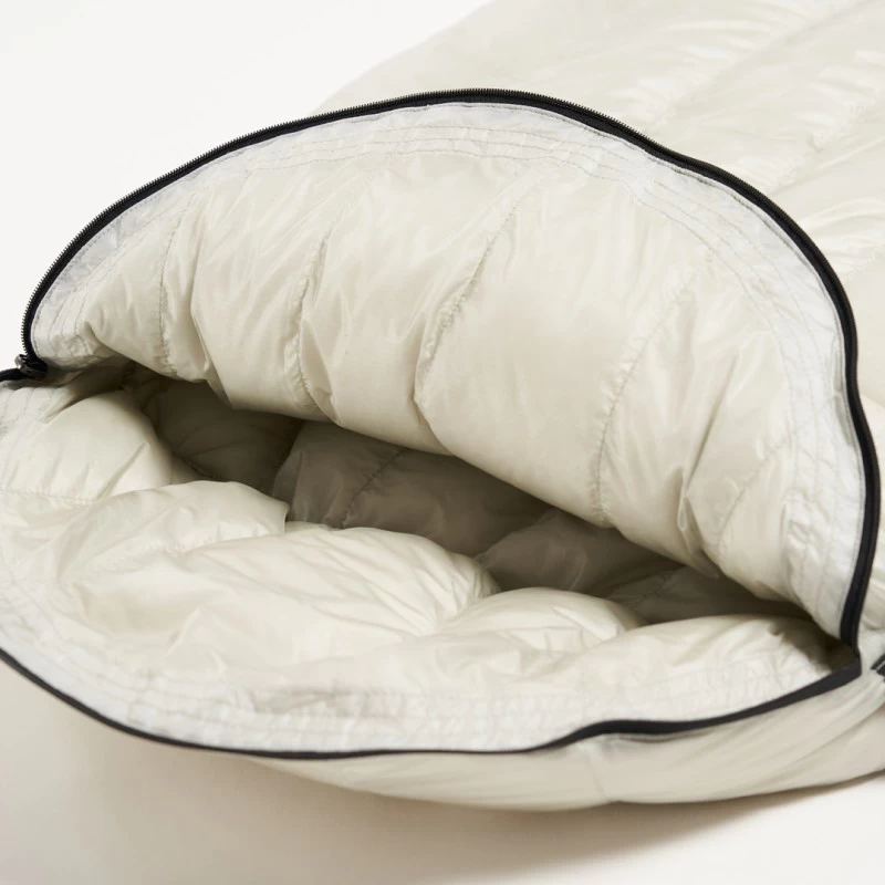 Sac de couchage ultraléger -5°C avec ouverture centrale, garni de 400 g de duvet d’oie polonais de 860 cuin.