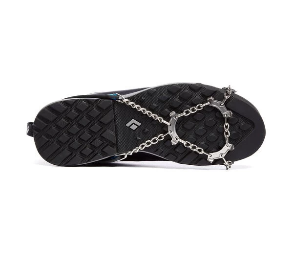 Les Blitz Spike de Black Diamond sont des crampons ultralégers, au design minimaliste, conçus pour les randonneurs, les marcheurs, les traileurs, à la recherche d’un système d’accroche efficace, compact, léger et facile à installer et à enlever. Les Blitz Spike sont dotés d’une sangle de maintien du talon en élastomère et d’un étrier à l’avant en sangle. L’accroche est composée de six pointes en acier inoxydable positionnées sous l’avant-pied.