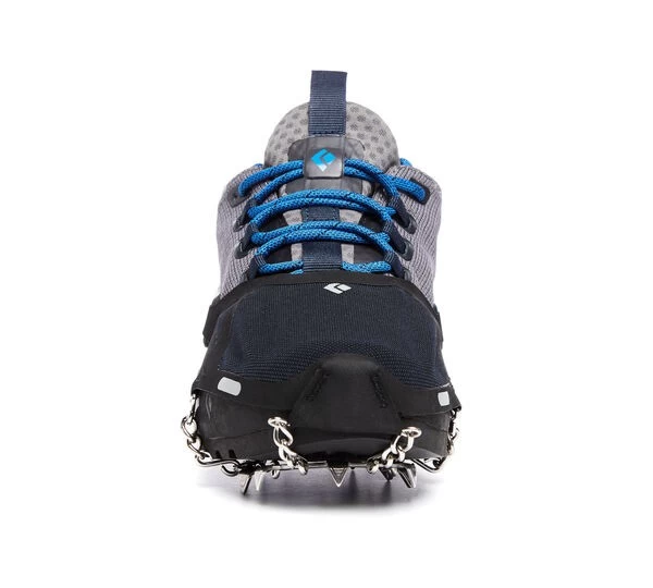 Les Distance Spike de Black Diamond sont des crampons légers, antidérapants conçus pour se déplacer rapidement et en sécurité en montagne sur les sols gelés, verglacés et enneigés. Ils permettent des bons appuis et évitent les glissades. Ce modèle polyvalent est équipé de 14 pointes en acier de 8 mm offrant une bonne adhérence sur neige et verglas tout en ayant un bon maintien sur des surfaces dures. Ces crampons antiglisse sont équipés d’une sangle élastomère de maintien au talon et d’un avant-pied en tissu softshell. Cet avant pied est conçu pour améliorer le confort, le maintien et pour protéger le devant de vos chaussures contre la neige. Le design innovant de l’avant pied permet d’alléger le poids total des crampons.