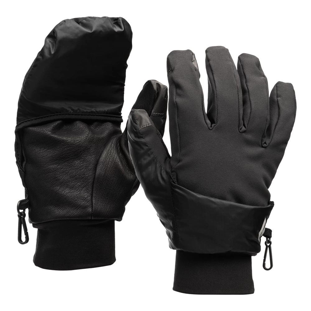 Les Wind Hood Softshell Gloves de Black Diamond est une paire de gants chaude et protectrice. Elle combine un gant softshell extensible ultra respirant avec un rabat sur le dessus de type moufle. Réalisé en Pertex Endurance, il est coupe-vent et une haute résistance à l’eau. Il se replie et se range facilement dès que le temps se radoucit. Ces gants disposent d’une isolation PrimaLoft Gold.