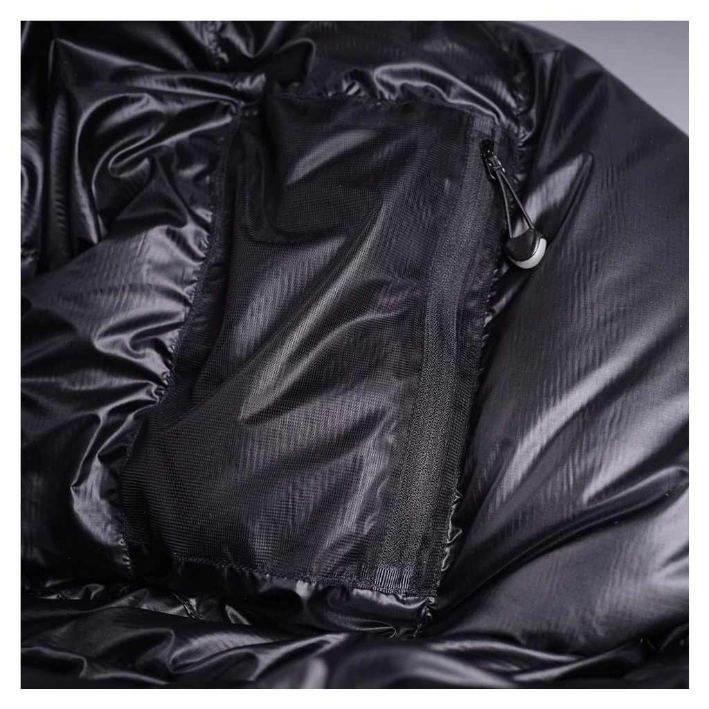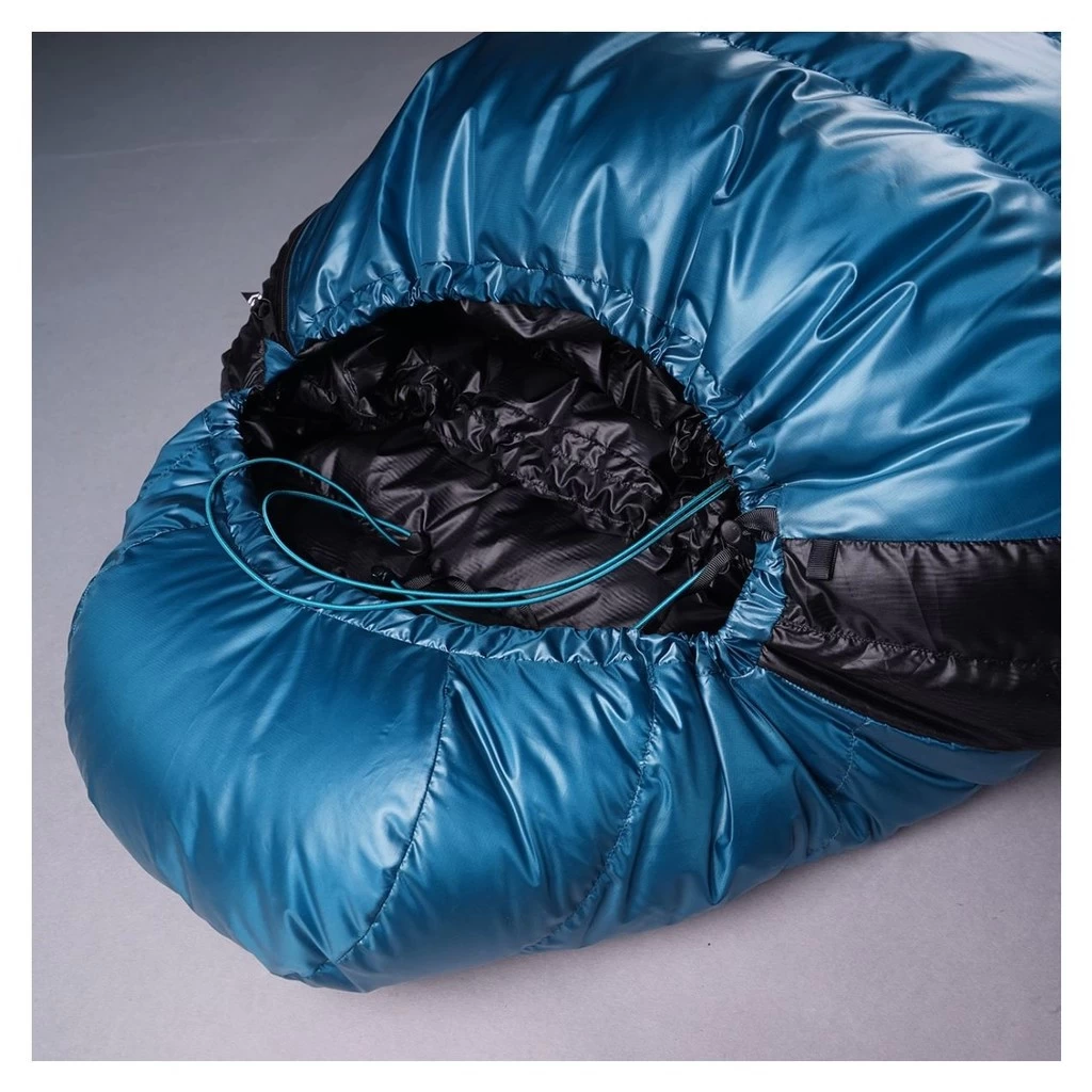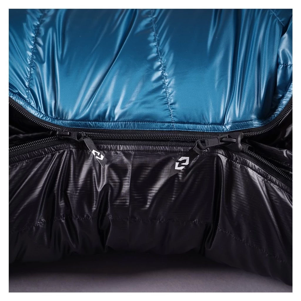 En complément du garnissage de qualité, l’enveloppe externe et interne est en tissu Pertex Quantum DWR qui a des propriétés déperlantes et coupe-vent. Les compartiments en forme de V permettent de séparer le garnissage du dessus et du dessous et de garder en place le duvet.