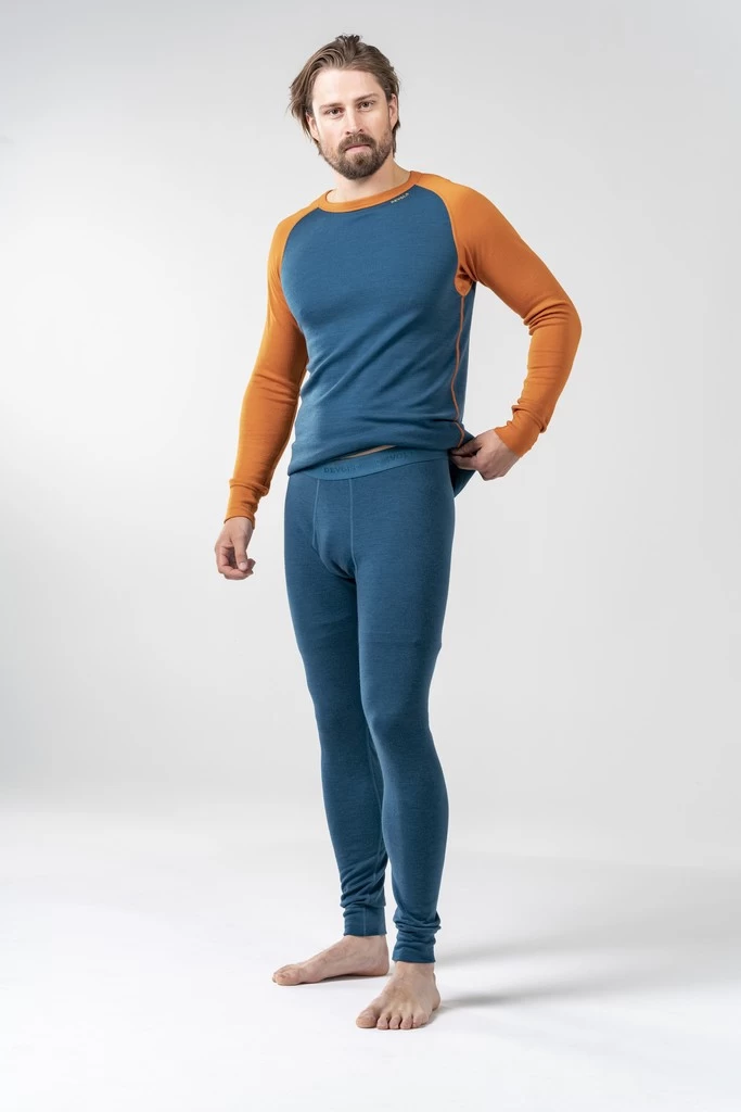 L’Expedition Merino 235 Longs Man de la marque norvégienne Devold est composé d’une laine mérinos de 235 g/m². Sur sa face intérieure 100 % en laine de mérinos, la finesse de la fibre est de 18,7 microns, et sur sa face extérieure à 90 %, elle est de 20,5 microns. Conçu pour les conditions météorologiques extrêmes, il se porte aussi en premier couche pour un apport de chaleur conséquent.