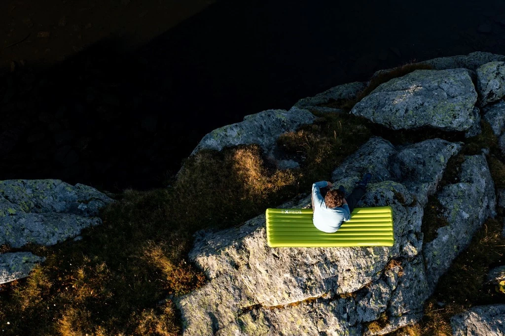 - Légèreté : les matériaux utilisés (polyester 20 deniers recylcé) permettent à Exped de proposer un matelas très léger : 310 grammes, ce qui est une performance au regard du confort qu’il procure et des performances thermiques.
