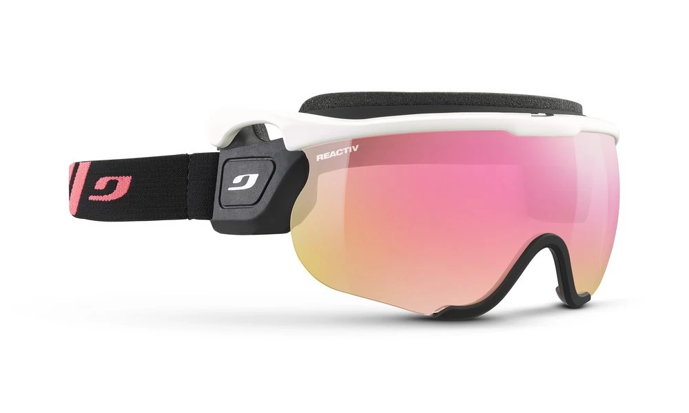 Le masque Sniper Evo Reactiv Cat.1-3 de Julbo est une visière panoramique relevable. Il a été spécialement conçu pour la pratique du ski de randonnée nordique, le ski de fond et les biathlètes les plus exigeants. Son écran sphérique amovible couvre bien le visage et assure un champ de vision horizontal et vertical optimal. Un bandeau élastique, avec deux boucles de réglage, permet un bon maintien, même lors d’activité intense.