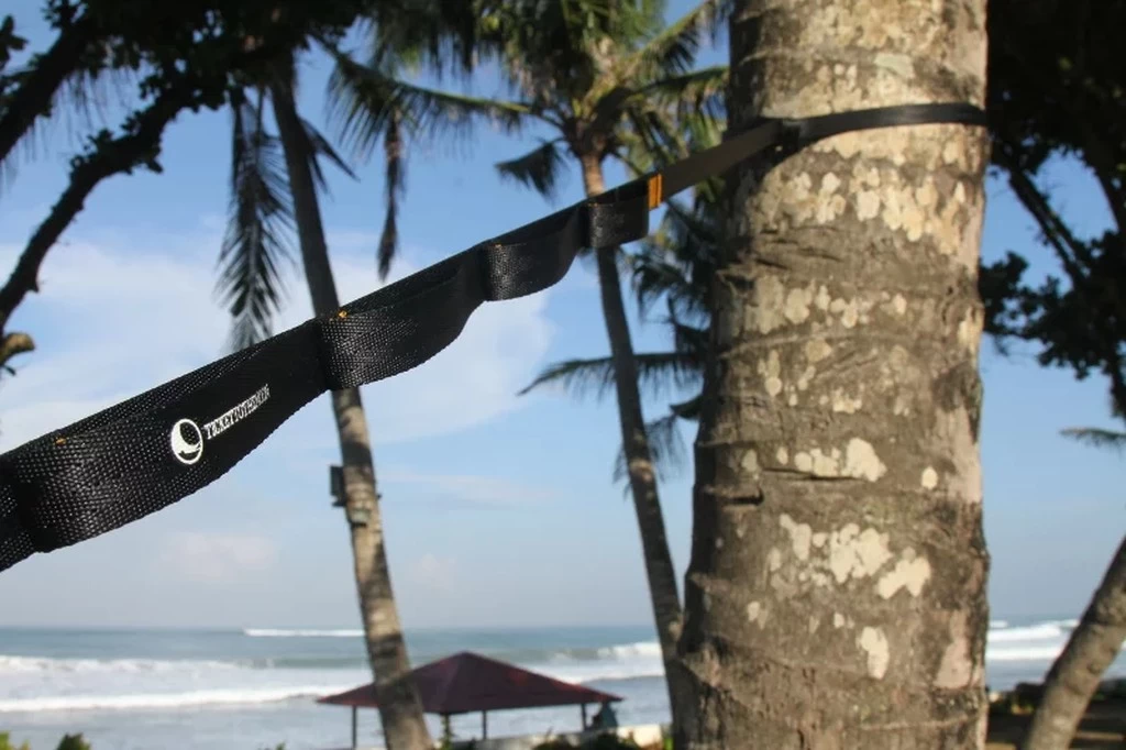 Larges sangles de suspension conçues pour éviter d’abîmer les arbres. Facile à installer et à retirer.
