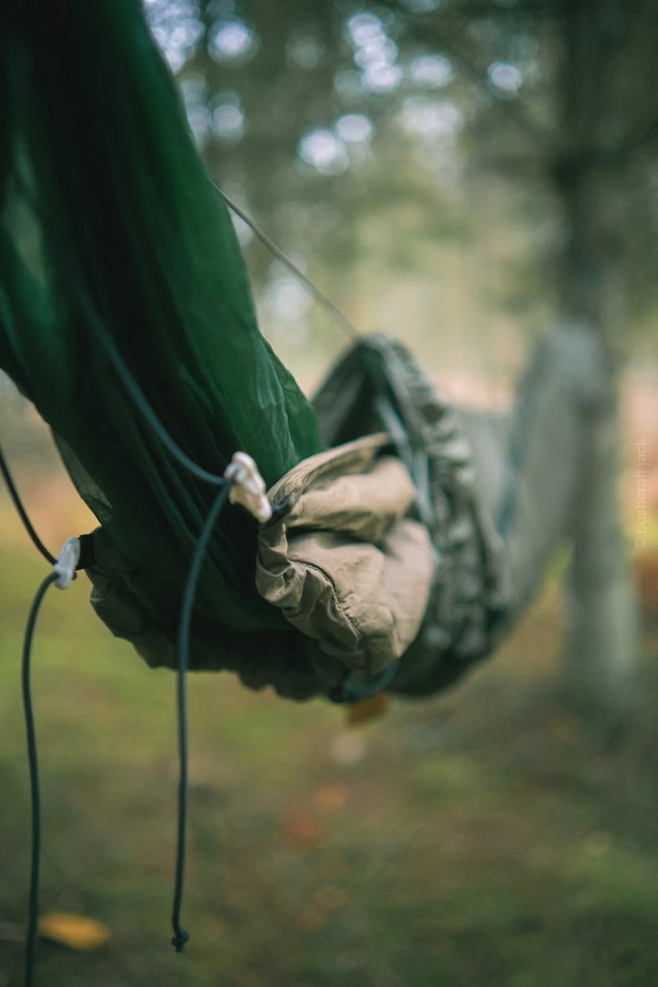 Le Larva de Lesovik est un sac de rangement pour transporter votre hamac de camping complet et donc prêt à l’emploi !