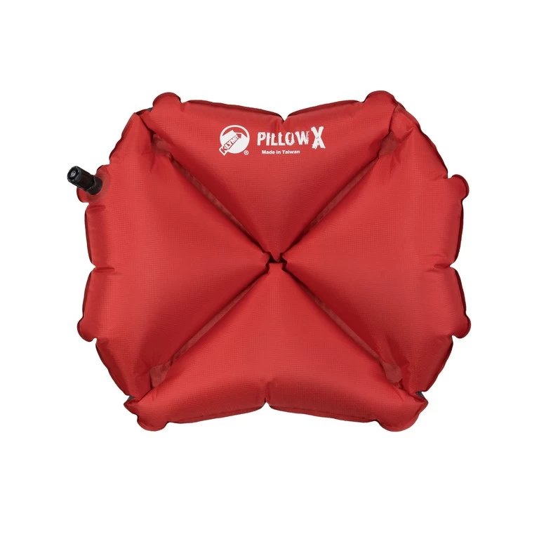 Le Pillow X de Klymit est un oreiller gonflable avec une forme en X qui permet de conserver la tête au centre de l’oreiller. Les surfaces sont différenciées avec la partie inférieure en tissu plus résistante à l’abrasion en 75 deniers et sur le dessous, une matière plus agréable au contact de la peau en 30 deniers.