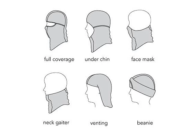 Recouvre tout le visage sauf les yeux. Motifs en silicone pour maintenir les lunettes en places.