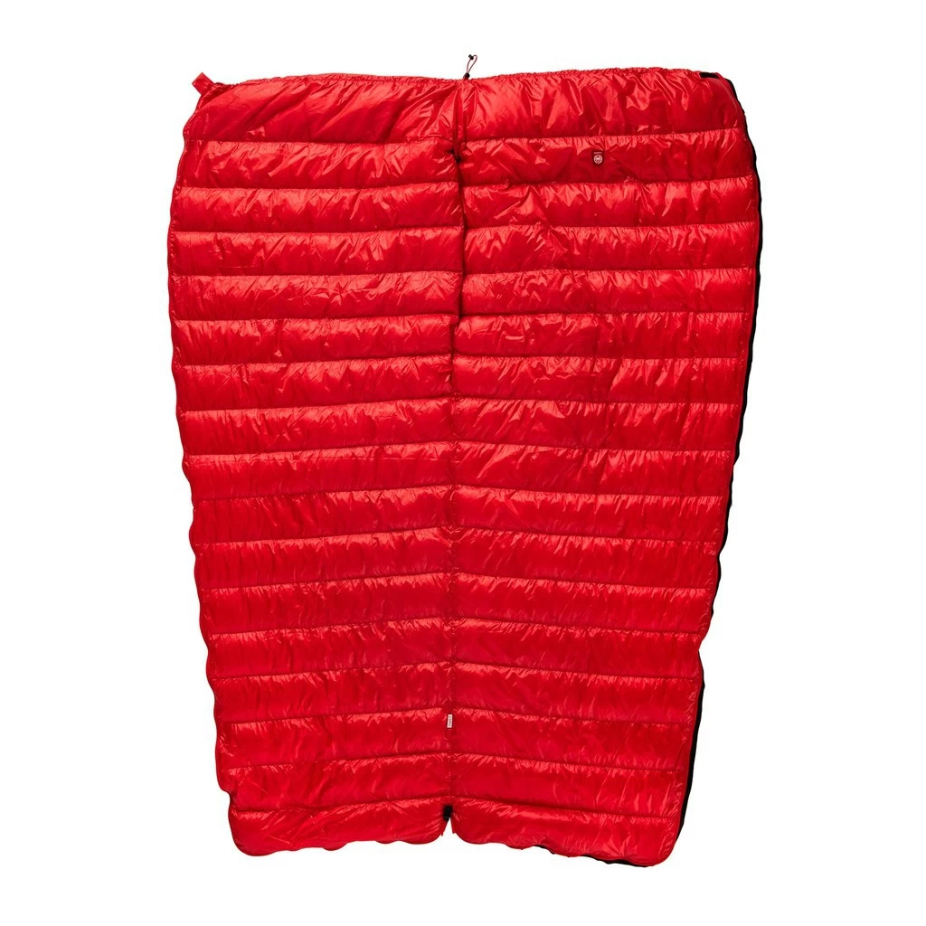 Mode couette : En ouvrant la fermeture Ă©clair intĂ©gralement, vous disposez d’une couette pour deux personnes. A utiliser seul ou par-dessus vos sacs de couchage pour augmenter leur isolation.