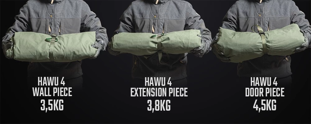 L’Hawu 4 est une tente polyvalente composée de plusieurs éléments qui se fixent l’un à l’autre grâce à des fermetures à glissière. Chaque composant est une option qui permet d’agrandir l’abri. La conception et les finitions sont bien pensées. Lorsque les éléments sont assemblés, un rabat tempête vient protéger les fermetures à glissières pour une protection optimale.