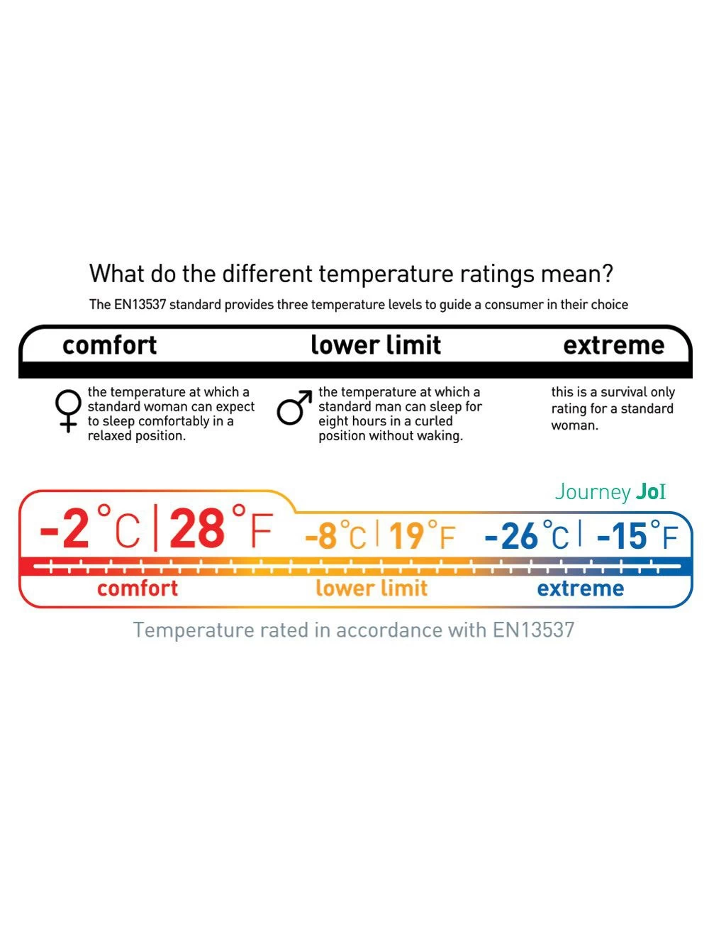 Grùce aux caractéristiques techniques, le Journey JOI offre une température confort de -2°C ce qui est performant au regard du volume et du poids total du sac de couchage.