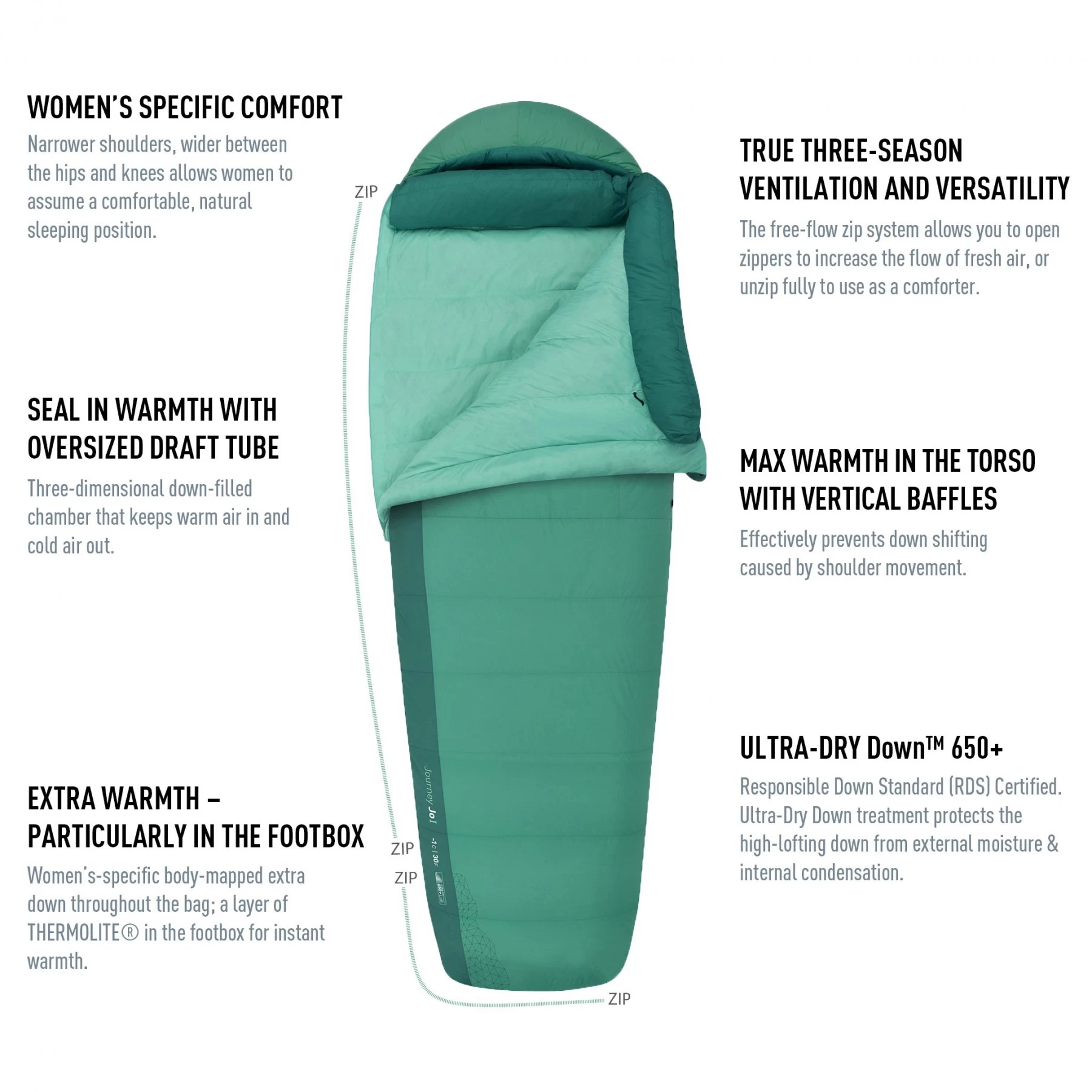 Le Journey JOI de Sea to Summit est un sac de couchage conçu pour apporter aux femmes du confort et de la chaleur. Forme rectangulaire offrant plus dâespace et de confort quâun sac de couchage traditionnel. GrĂące Ă sa forme, vous ne serez plus Ă lâĂ©troit et vous pourrez bouger durant la nuit.