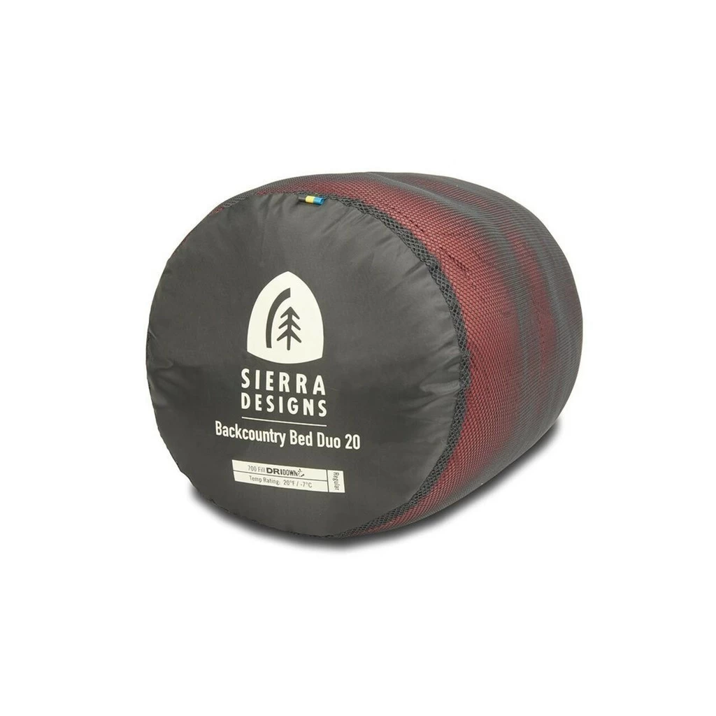 Le Backcountry Bed 20 Duo de Sierra Designs est un sac de couchage pour 2 personnes disposant dâune isolation en duvet de canard. De forme rectangulaire et muni dâune couette, il est trĂšs confortable et modulable. Celle-ci offre une grande libertĂ© de mouvements, ainsi que la possibilitĂ© de se couvrir ou de se dĂ©couvrir rapidement durant la nuit. Au niveau des pieds, une trappe dâaĂ©ration permet de ventiler, ce qui est particuliĂšrement utile lors des nuitĂ©es les plus chaudes.