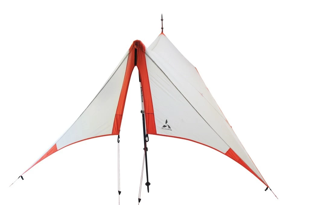 La SplitWing UL Tarp de SlingFin est un abri minimaliste ne pesant que 200 g (315 g avec les accessoires). Cette bâche ultralégère en 10D Nylon 66 Ripstop Sil / Sil, renforcée en 30D sur certaines parties, se monte avec deux bâtons de randonnée (non fournis). Le tissu résistant et imperméable, est siliconé sur les deux faces. Un jeu de sardines et de haubans sont fournies avec la tarp.