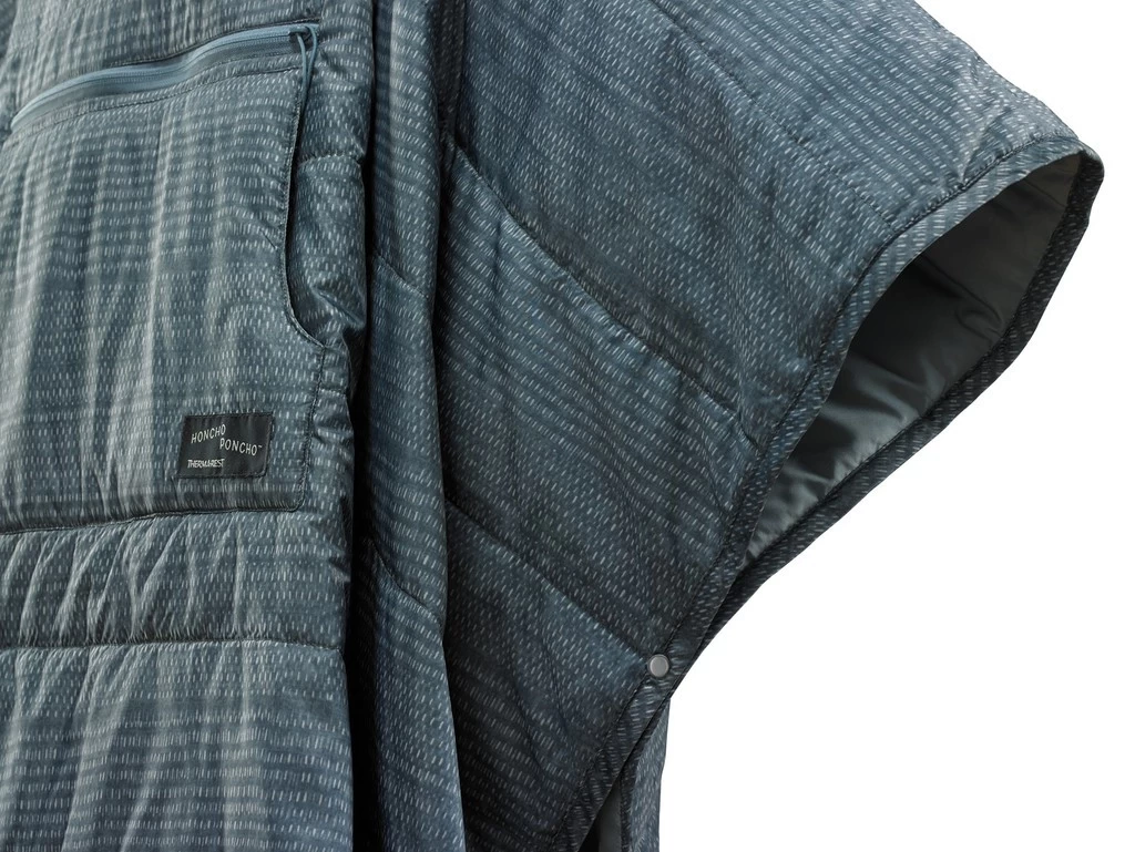 Le Honcho Poncho de Thermarest est un poncho chaud garnit dâune fibre creuse eraLoft. L’isolation synthĂ©tique compressible repousse l’eau et possĂšde une excellente rĂ©gulation de la tempĂ©rature. Le tissu extĂ©rieur est en polyptĂšre rĂ©sistant Ă lâeau.