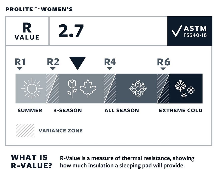 Le Prolite Women’s de Therm-A-Rest est un matelas auto-gonflant dédié aux femmes, prévu pour les randonnées 3 saisons. Son R-Value est de 2.7 avec la nouvelle norme ASTM F3340-18.