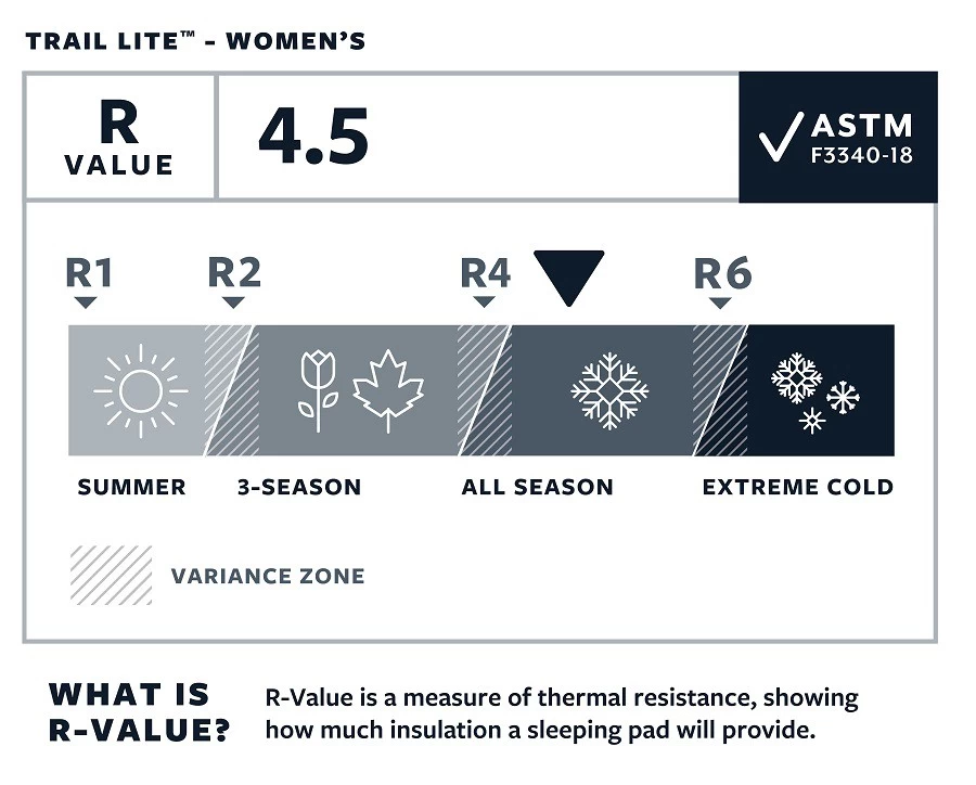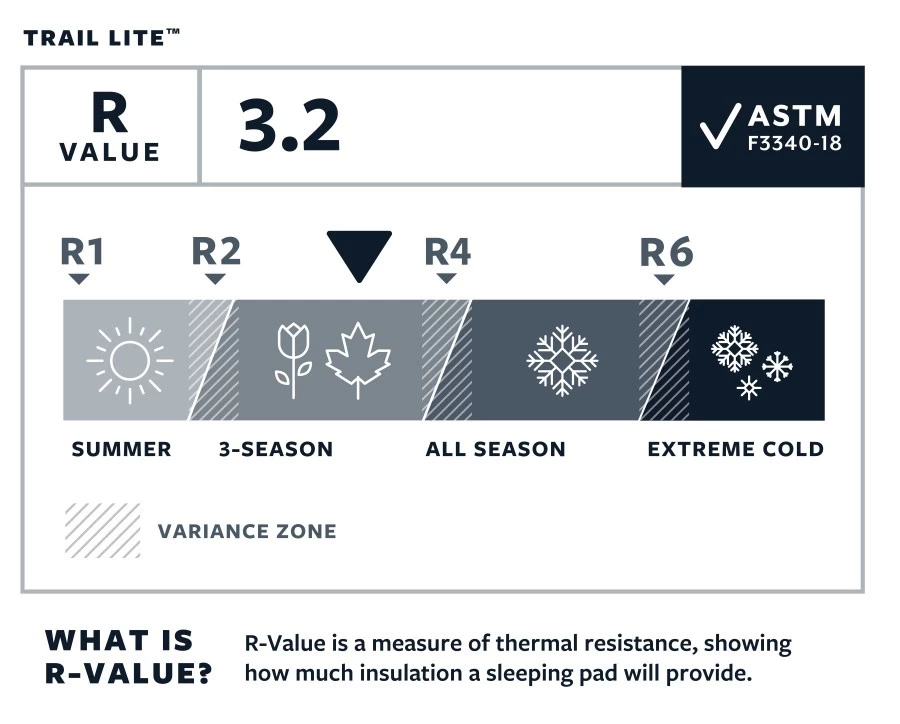 Le Trail Lite de Thermarest est un matelas autogonflant offrant un ratio optimal entre le poids, le confort, l’isolation et la durabilité. Ce modèle correspond donc aux besoins des baroudeurs, randonneurs qui souhaitent dormir confortablement sur un matelas solide (polyester 75 deniers). Le trail Lite est un modèle isolé disposant d’un R-Value de 3.4 avec la nouvelle norme ASTM F3340-18.