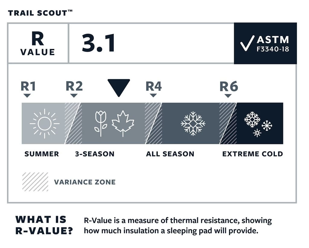 Le Trail Scout de Thermarest est le matelas autogonflant idéal pour le camping et des sorties weekend. Il est compact et d’un poids raisonnable. Son indice d’isolation (R-Value) est de 3.1 avec la nouvelle norme ASTM F3340-18. Il est prévu pour un usage 3 saisons.
