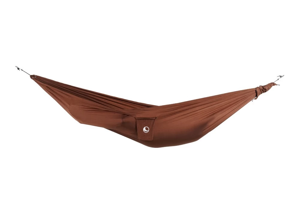 Le Hamac Compact de chez Ticket to the Moon est fabriqué en toile de parachute : 100% nylon. Ce tissu est confortable, respirant, doux et très élastique. Ce hamac épouse parfaitement la forme du corps : une fois installé, on ne ressent aucun point de pression. Ce hamac est simple et rapide à accrocher grâce à ses systèmes d’accroche (vendu séparément) et car il est doté de crochets en inox très résistants (inclus).