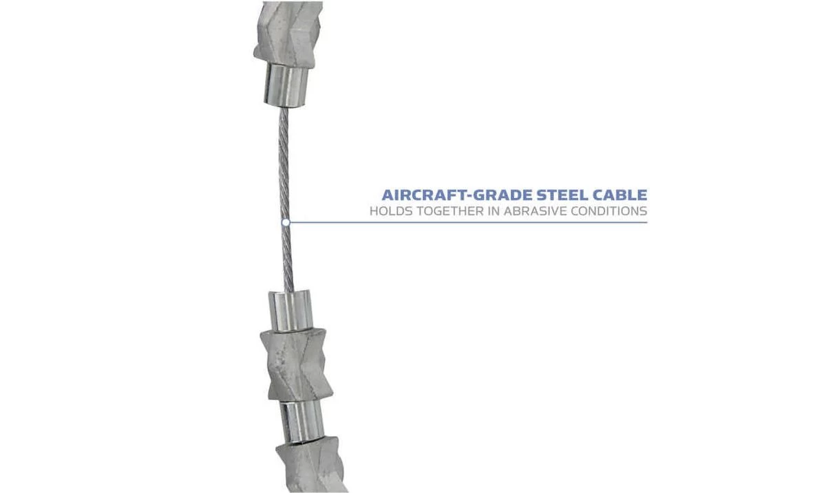 Ces chaînes offrent une traction agressive pour toutes les conditions de marche hivernale. Avec, vous pourrez marcher, randonner ou travailler dans des conditions difficiles. Les perles en forme de diamant ont des bords mordants qui adhèrent dans toutes les directions. Fabriqués en acier et enfilés sur un câble en acier de qualité aéronautique, ce système de crampons est durable et s’avère très efficace sur des surfaces de transitions telles que la roche, le gravier, le béton nu. Ces perles en forme de diamant pivotent indépendamment, empêchant l’accumulation de neige et de glace.