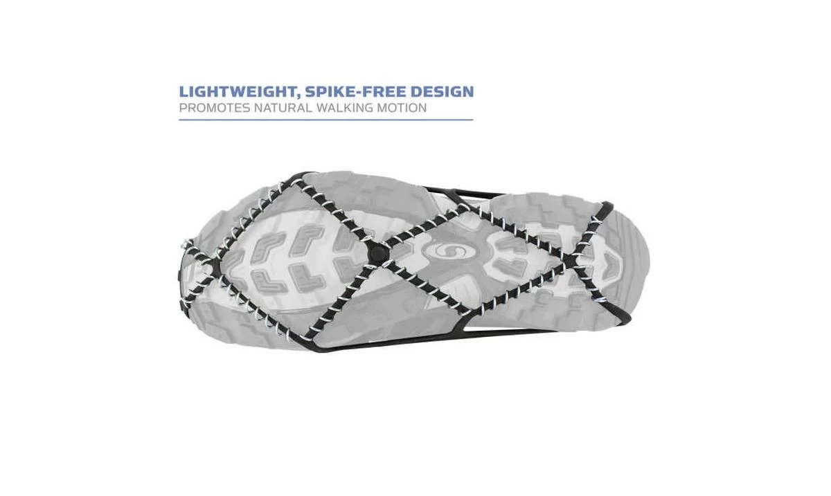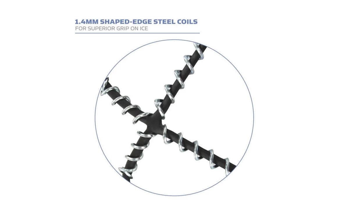 Chaînes à neige légères, faciles à enfiler sur la chaussure pour marcher dans la neige et sur les sols verglacés. La sangle amovible assure un ajustement sûr.
